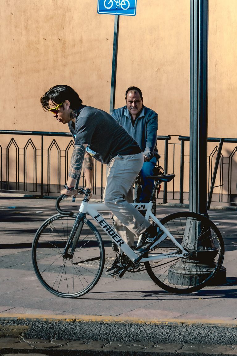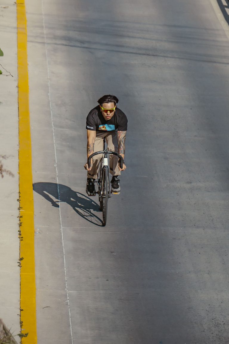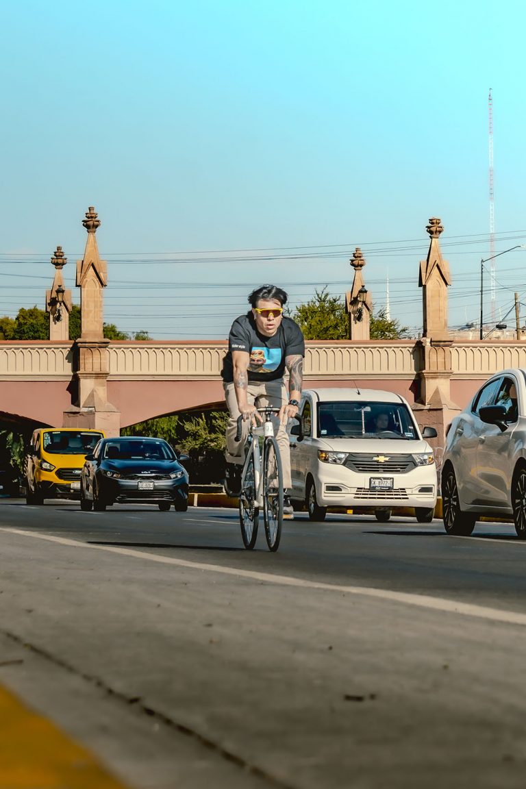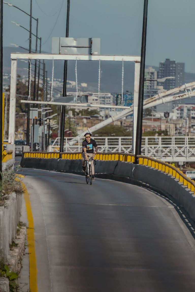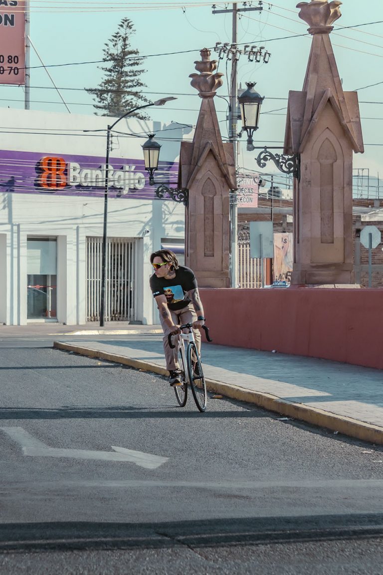 No solo documento el movimiento, sino la cultura que se vive sobre dos ruedas. En esta ocasión, bajé a la parte baja del Malecón del Río en León para capturar la esencia de Emmanuel, mejor conocido como Peruzzi (@peruzii.fixie), un apasionado del piñón fijo, la foto muestra una frase que comparto: “Por donde sea, pero en bicicleta”.