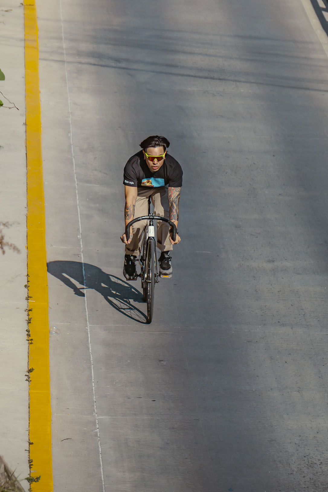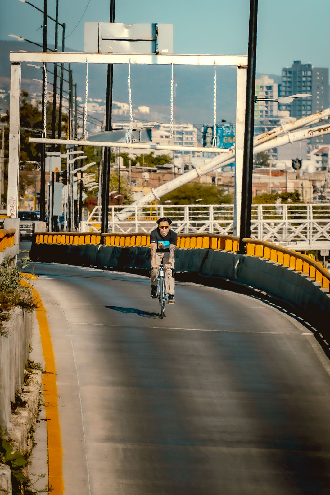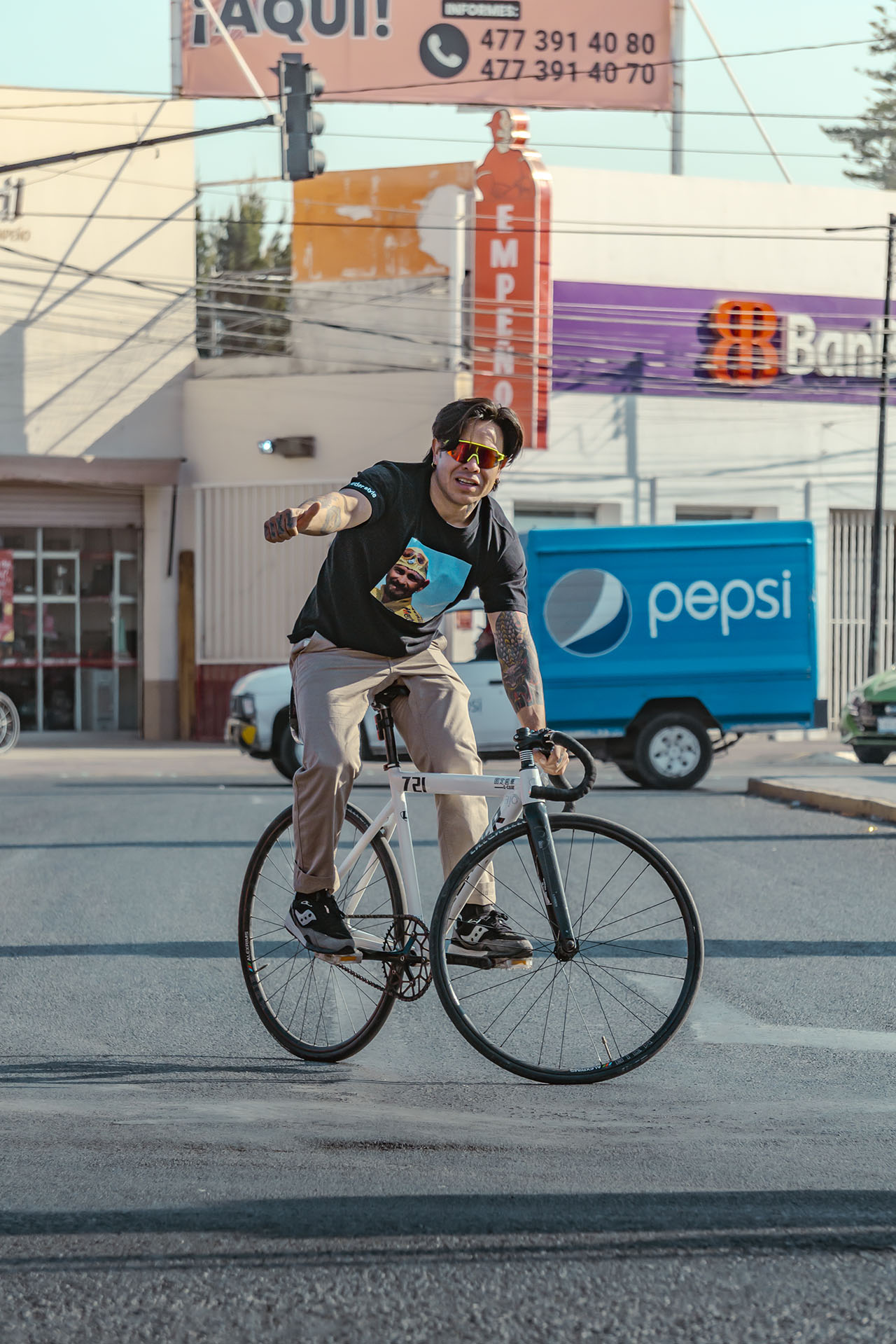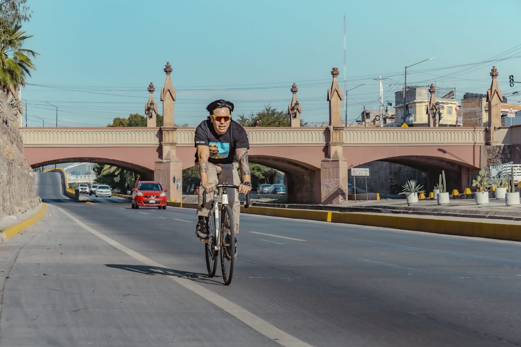 No solo documento el movimiento, sino la cultura que se vive sobre dos ruedas. En esta ocasión, bajé a la parte baja del Malecón del Río en León para capturar la esencia de Emmanuel, mejor conocido como Peruzzi (@peruzii.fixie), un apasionado del piñón fijo, la foto muestra una frase que comparto: “Por donde sea, pero en bicicleta”.