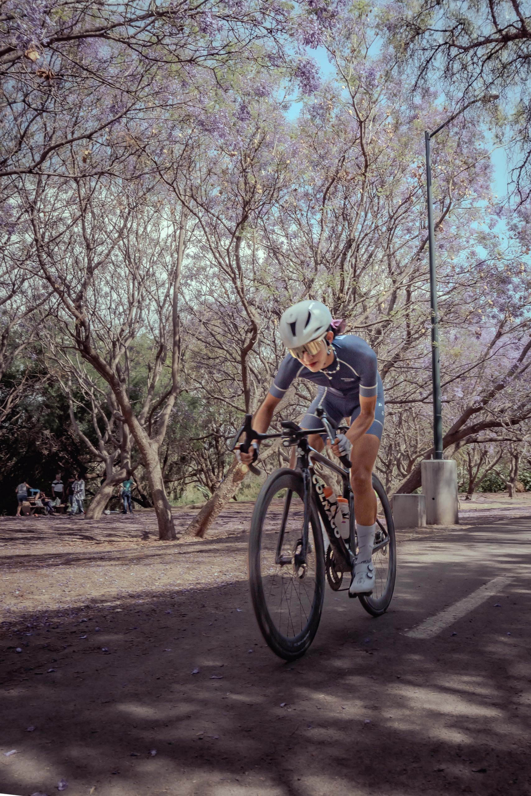 Bicitógrafo: La velocidad del equipo LAS bajo las jacarandas